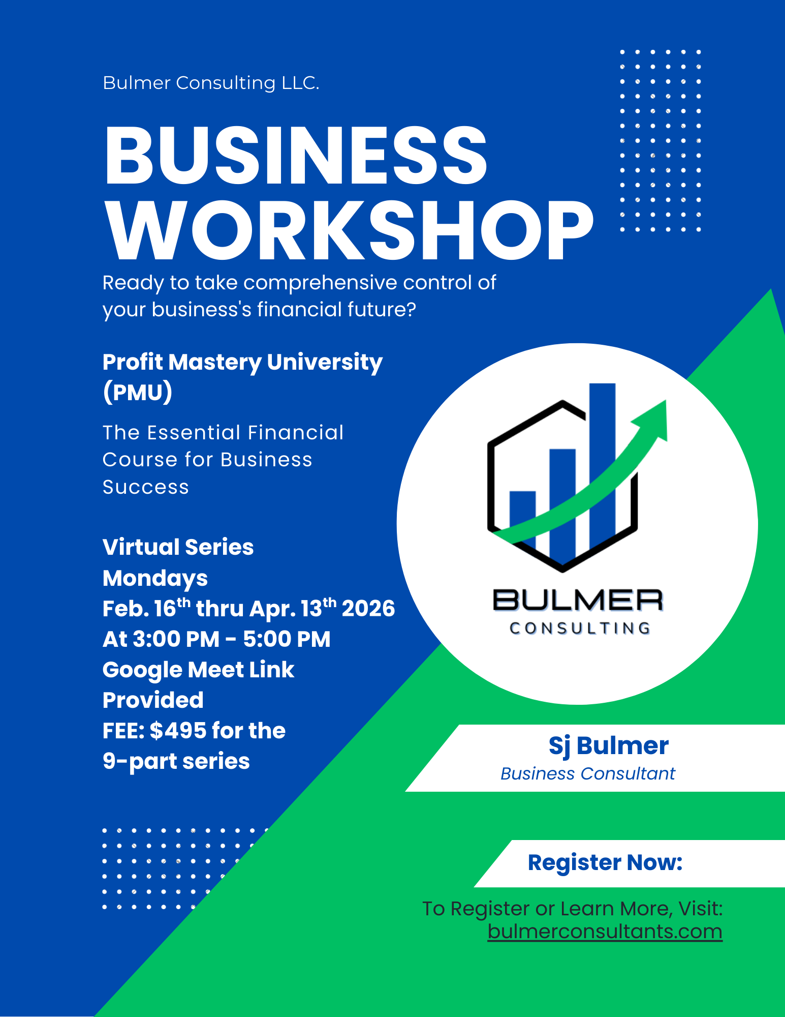 To Register: Visit bulmerconsultants.com/workshop-registration/ and select "Profit Mastery University".
